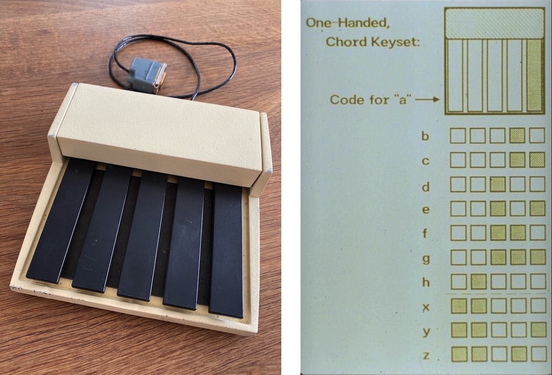 Το πληκτρολόγιο ακόρντων επιτρέπει την είσοδο 31 διαφορετικών κωδικών που καλύπουν όλο το λατινικό αλφάβητο ή μπορούν να αντιστοιχούν σε τροπικές κεντολές. Σε συνδυασμό με μια αποδοτική συσκευής επιλογής στόχων στην οθόνη, δεν υπάρχει ανάγκη για το παραδοσιακό πληκτρολόγιο, ειδικά για τη συχνή διεργασία της απλής επεξεργασίας έτοιμου κειμένου. Αν και είχε ήδη χρησιμοποιηθεί στο παρελθόν στον τηλέτυπο και στην συντομογραφία, ο συνδυασμός με το ποντίκι έχει το εργονομικό πλεονέκτημα ότι ο χρήστης δεν χρειάζεται να μετακινήσει τα χέρια του.