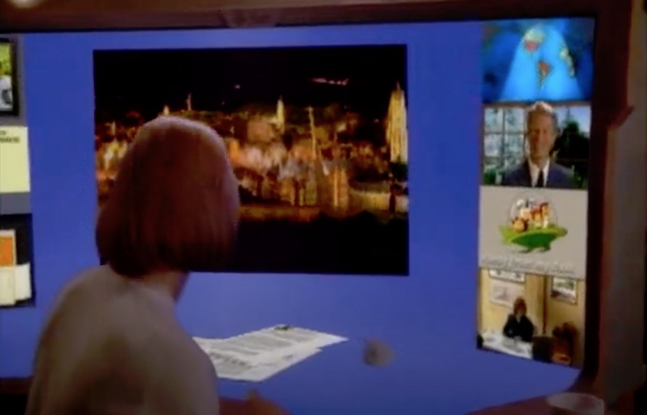 Στις αρχές της δεκαετίας του 1990 η Sun παρουσίασε ένα βίντεο με μια μεγάλη επιτραπέζια συσκευή χειρονομίας, η οποία βασίζεται στη συνεργασία μέσω τηλεδιάσκεψης με βίντεο, στην οποία η πρωταγωνίστρια εργάζεται από το σπίτι της. Το βίντεο υπόδειγμα χρησιμοποιεί την τεχνική της μπλε οθόνης για να εισάγει τις πρόσθετες ροές βίντεο πάνω στο αρχικό σκηνοθετημένο βίντεο.