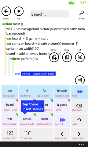 Το πειραματικό περιβάλλον ανάπτυξης Touch Develop είναι σχεδιασμένο ώστε να δουλεύει σε έξυπνα κινητά, οπότε έχουμε ξανά τα πλεονεκτήματα που δίνει η ανάπτυξη και εκτέλεση πάνω στην ίδια πλατφόρμα. Επιπλέον, είναι μια απάντηση στο διαχωριστικό γυαλί που δημιουργούν οι δημοφιλείς κινητές συσκευές με οθόνη αφής ανάμεσα στον χρήστη και στον προγραμματισμό της διάδρασης.