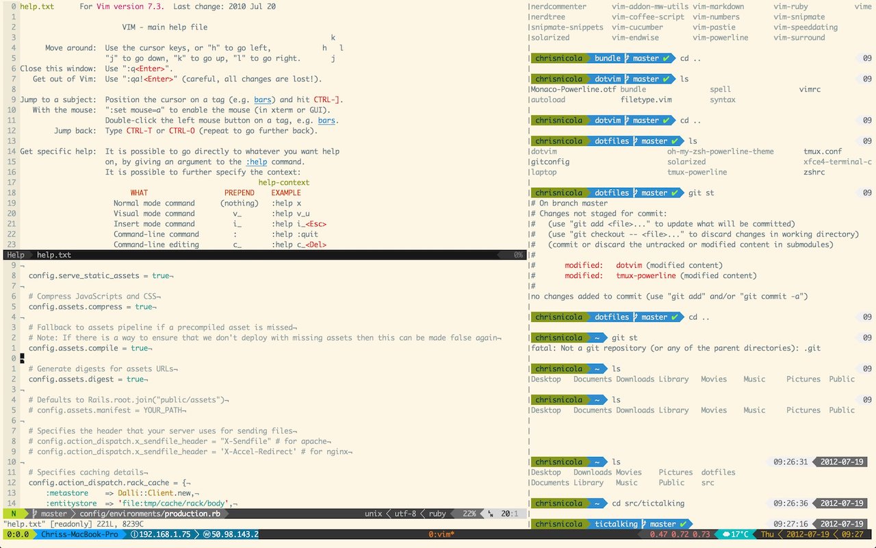 Ο συνδυασμός ενός ευέλικτου και επεκτάσιμου επεξεργαστή κειμένου, όπως ο vim, με ένα απλό παραθυρικό περιβάλλον ή ακόμη και με έναν πολυπλέκτη τερματικών όπως το tmux, επιτρέπει στον έμπειρο προγραμματιστή να έχει ένα γρήγορο και πλούσιο σε πληροφορία περιβάλλον που μπορεί να τον ακολουθεί ανεξάρτητα από τις δυνατότητες του τερματικού υπολογιστή.